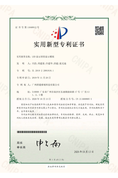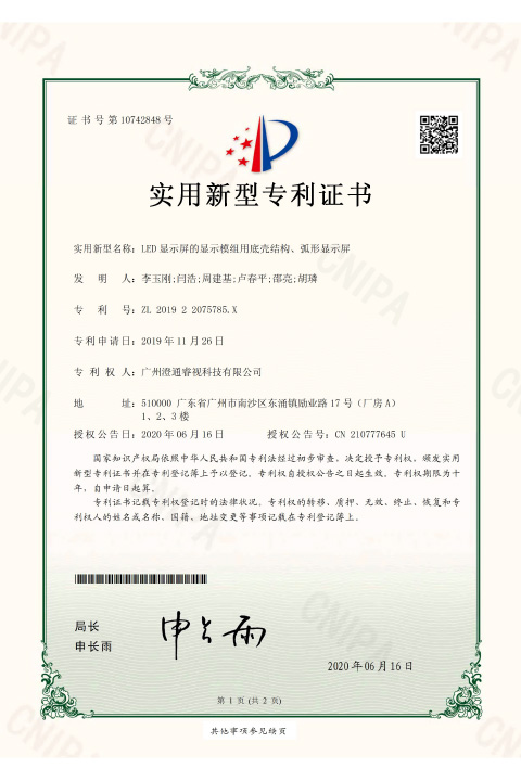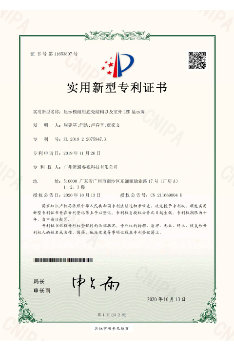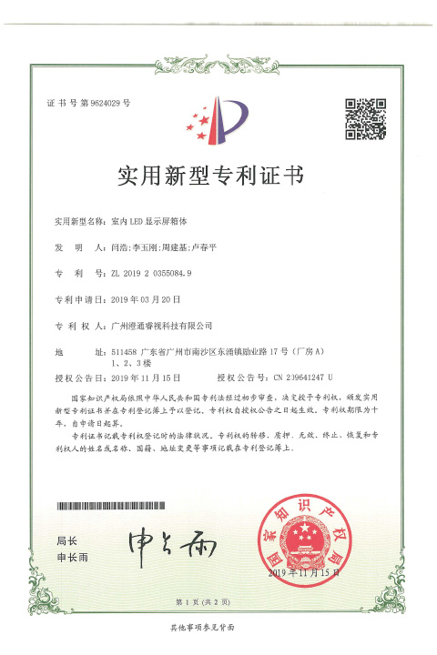 • 睿视实用新型专利证书