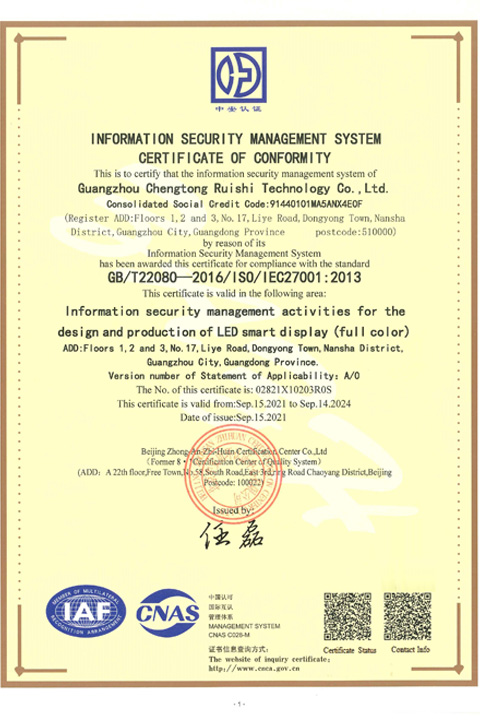 • ISO27001中文证书