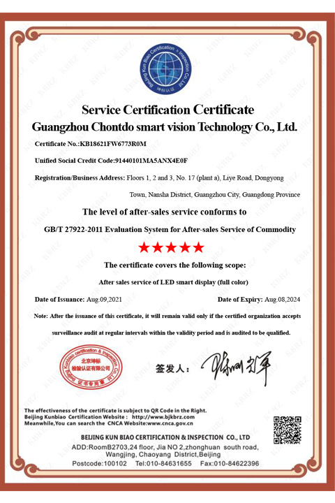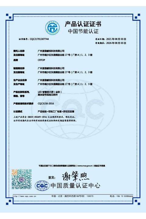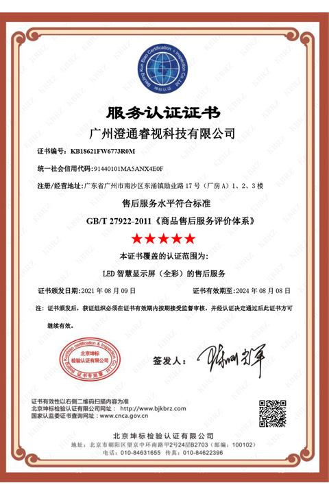 • 广州澄通睿视科技有限公司FW服务认证中文证书