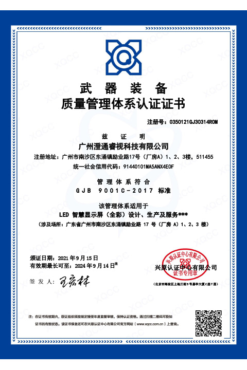 • 质量管理体系认证证书英文